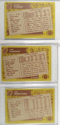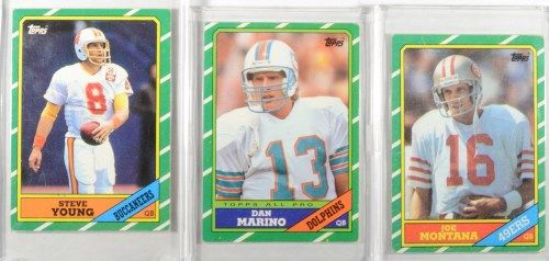 ALL 1986 TOPPS FOOTBALL- JOE MONTANA, DAN MARINO, & STEVE YOUNG ROOKIE. EX-VG.