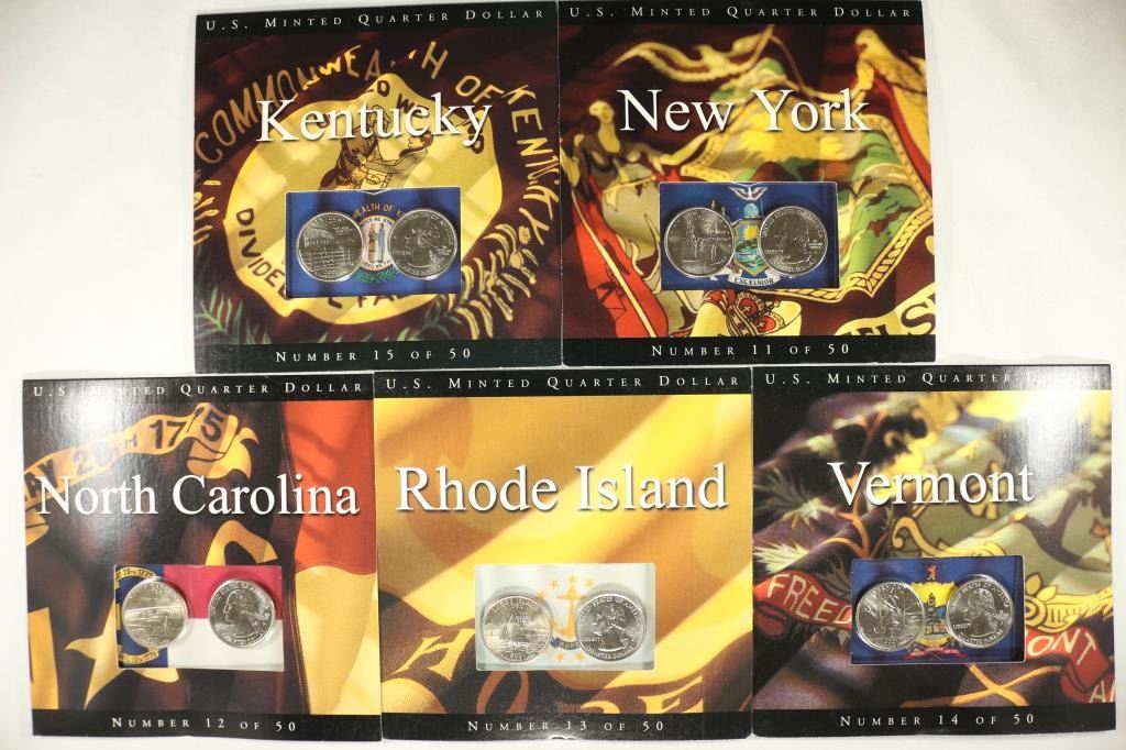 ON FOLDERS, KENTUCKY, NEW YORK, NORTH CAROLINA, RHODE ISLAND AND VERMONT, 10 COINS TOTAL