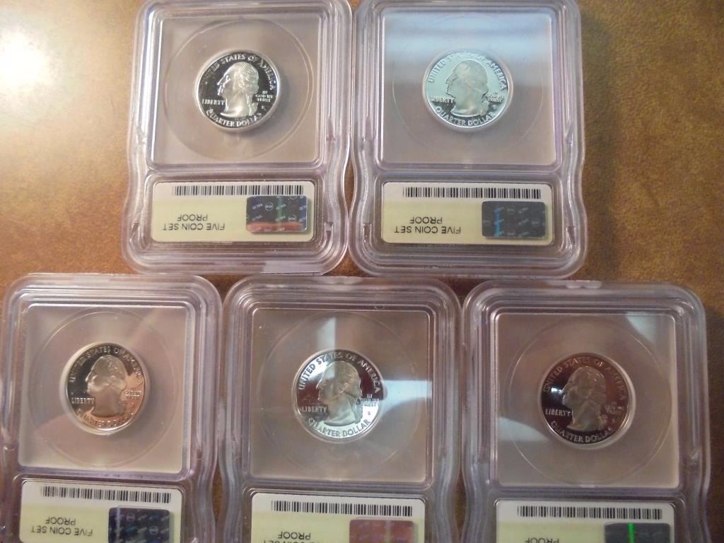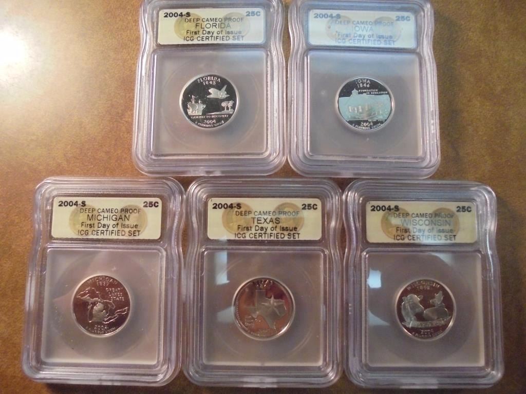 ALL 5-2004-S US 50 STATE QUARTERS ICG CERTIFIED SET, 1ST DAY ISSUE, DEEP CAMEO PROOF. FLORIDA, IOWA,