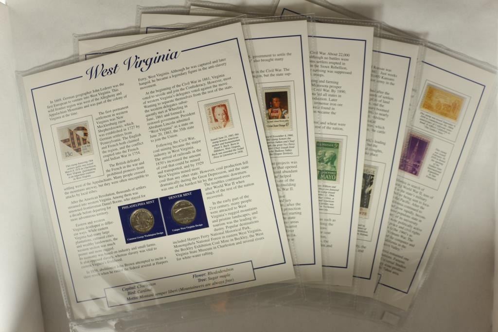 STAMPS UNC ON CARDS. CALIFORNIA, KANSAS, MINNESOTA, OREGON AND WEST VIRGINA