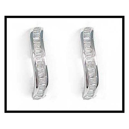 42 baguette diamonds in this striking pair of 18K white gold earrings are set beautifully. They create a smooth, clean design that is perfect for wear on any occasion with jeans, or a gown. They are 12mm (1/2") long. Though they were fairly priced for $550, now you can own them for much less than half of that amount.