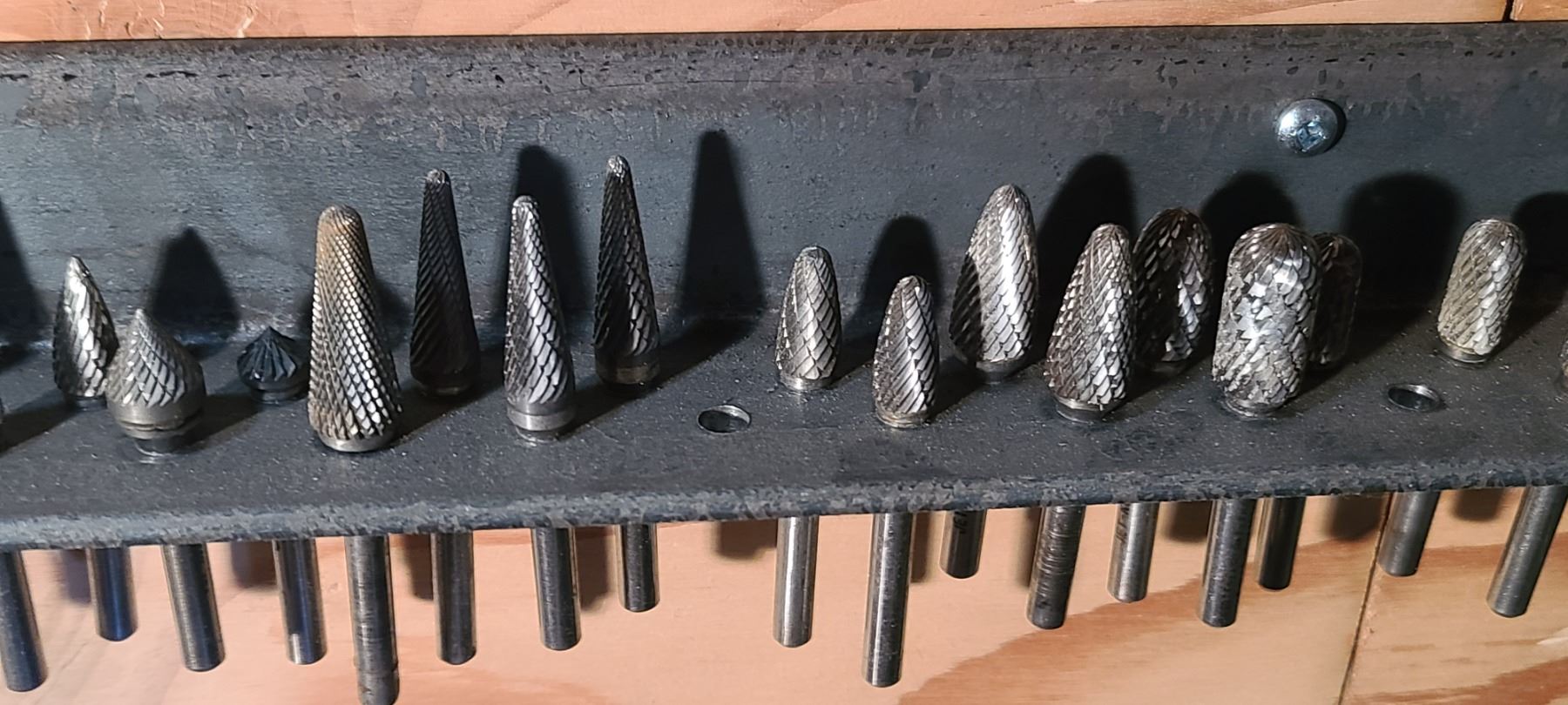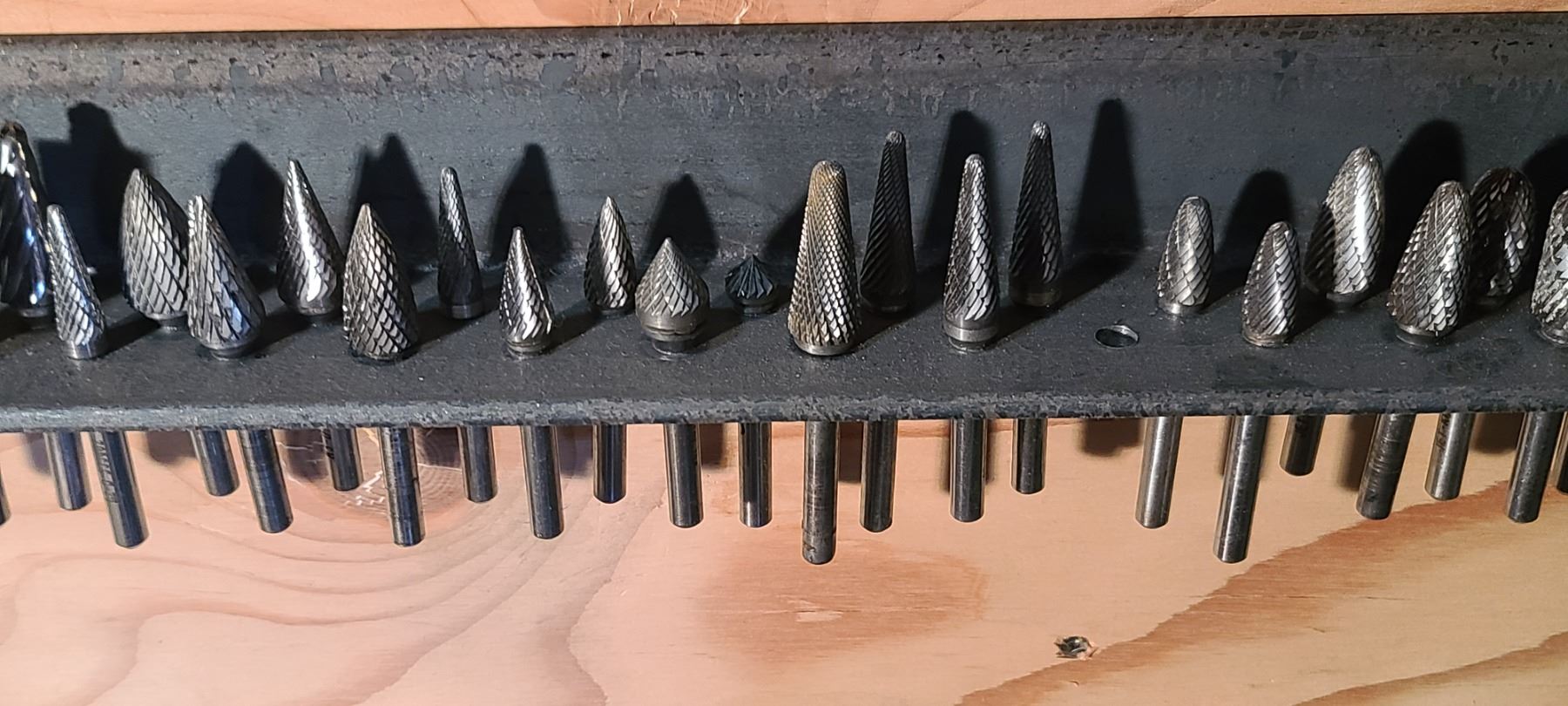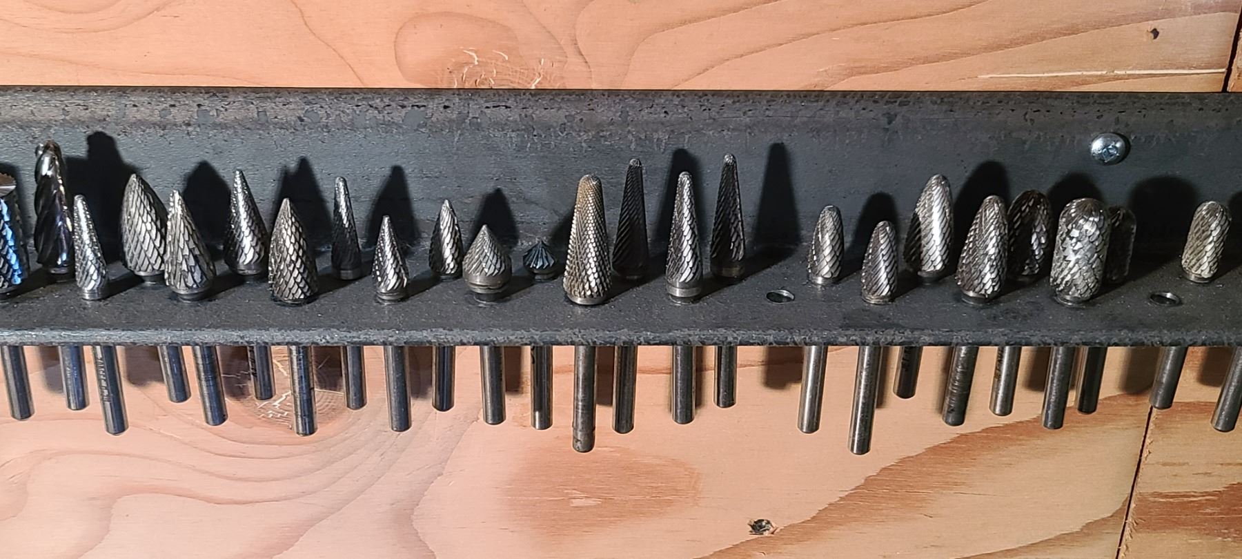 ALL CARBIDE BURRS AND FLAPPER WHEELS ON BOTTOM RACK - 1/4" SHANK