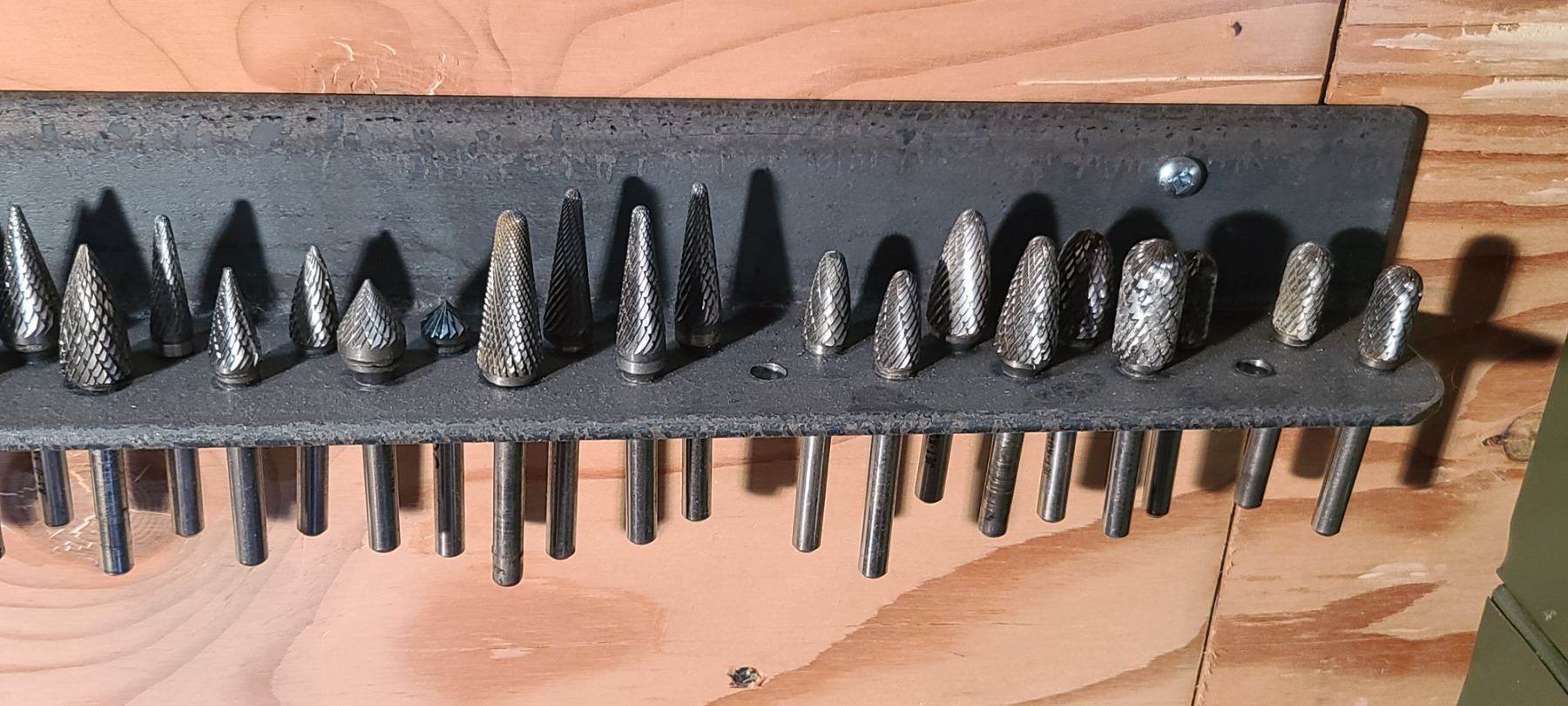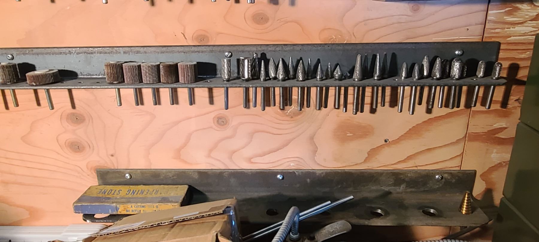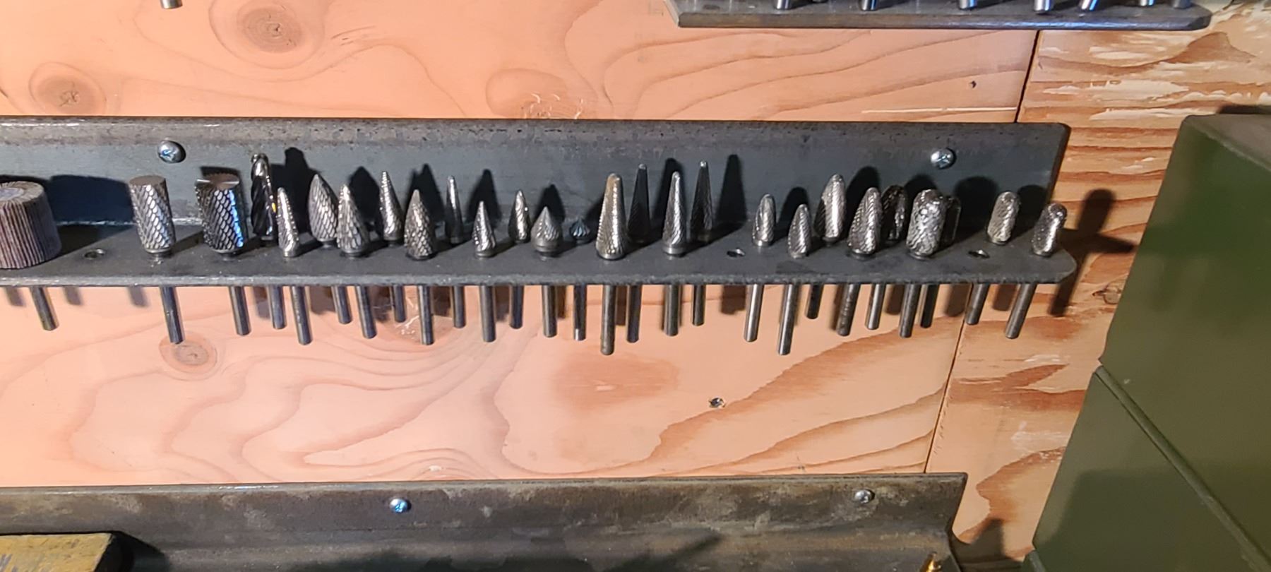 ALL CARBIDE BURRS AND FLAPPER WHEELS ON BOTTOM RACK - 1/4" SHANK