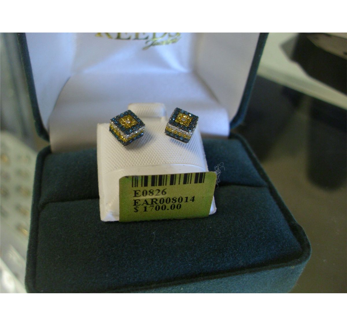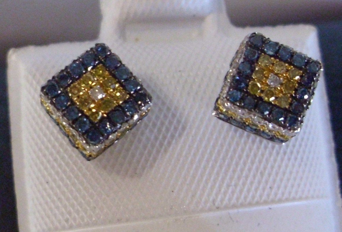 ALL DIAMOND EARRINGS-YELLOW,WHITE BLUE AND BLACK,14K GOLD