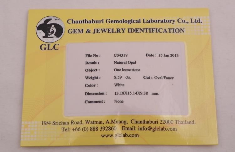 ALL NATURAL CERTIFIED UNHEATED LUMINECENT 8.59 CT OPAL .OVAL CUT .CELLOPHANE WRAP MAY AFFECT QUALITY OF PICTURE.
