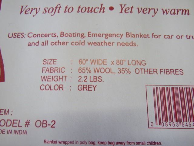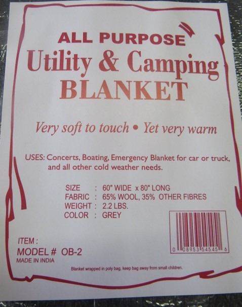 ALL PURPOSE BLANKET (NOS) *60" X 80") *GREY*