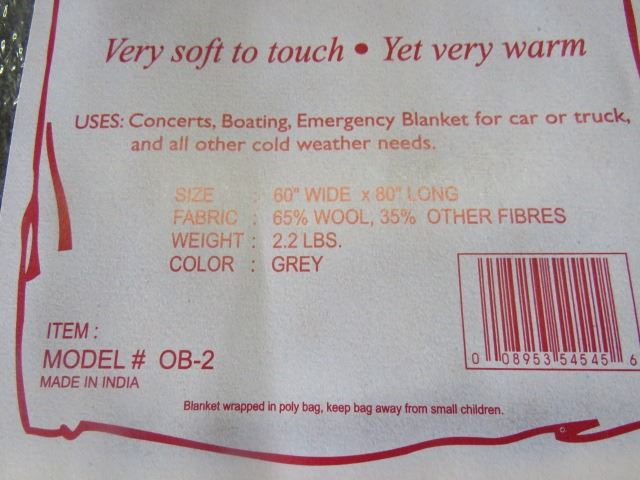 ALL PURPOSE BLANKET (NOS) *60" X 80") *GREY*