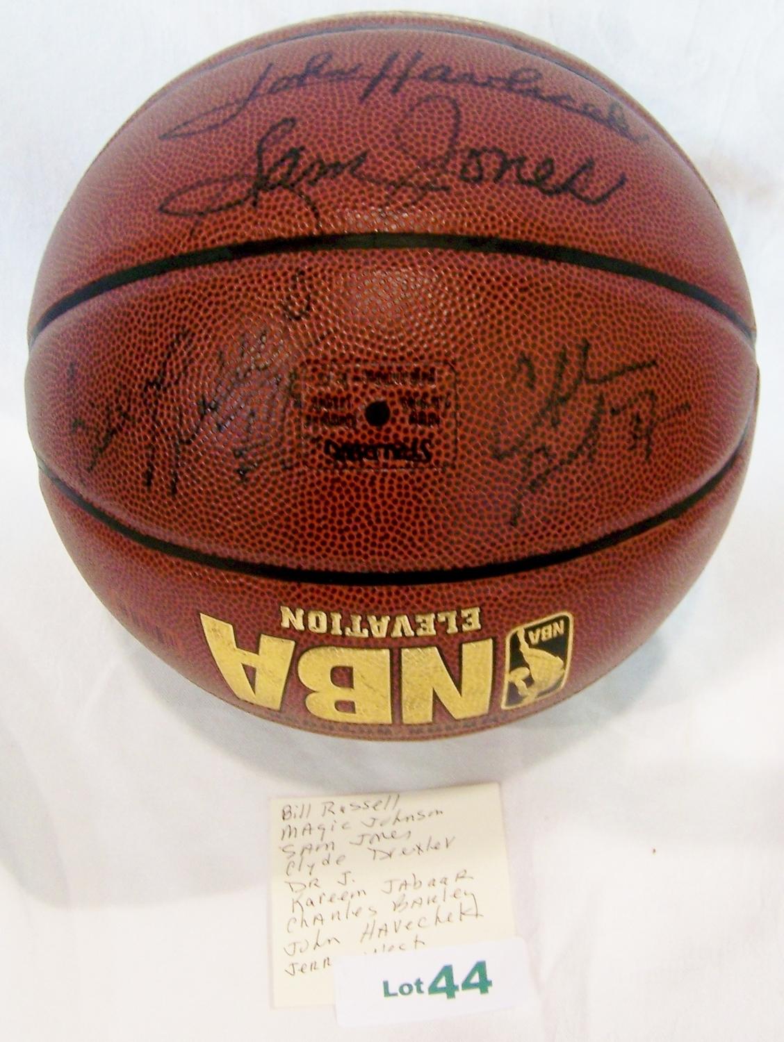 Signed By Jerry West, John Havachek, Charles Barkley, Kareem Abdul Jabbar, Dr. J, Clyde Drexler, Sam Jones, Magic Johnson, and Bill Russell.