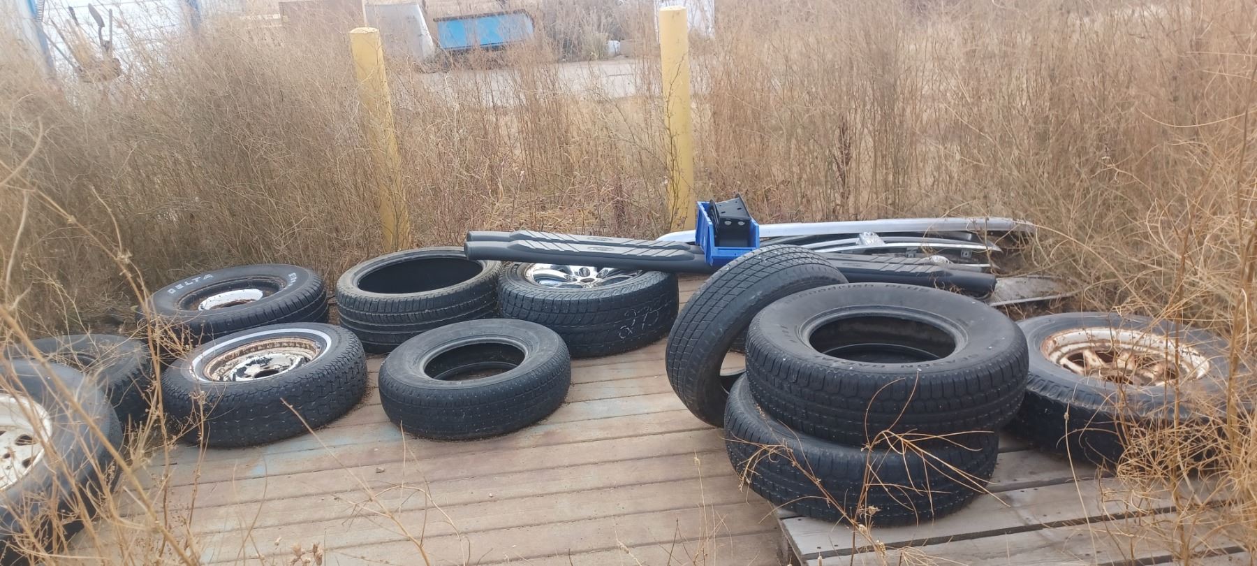 ALL TIRES. RIMS, DODGE TRUCK GRILL AND NEW FORD RUNNING BOARDS