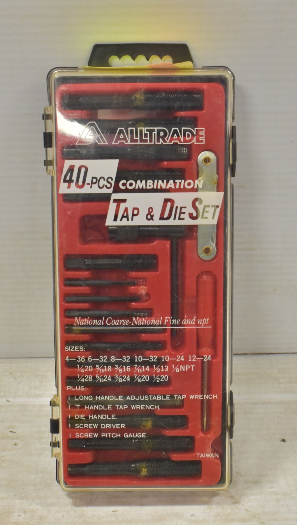 TAP & DIE SET (UNUSED)**ALL ITEMS MUST BE REMOVED BY 5PM MONDAY, OCTOBER 17TH, 2022. ALL REMAINING ITEMS WILL BE SUBJECT TO A $6.00 PER DAY STORAGE CHARGE. ANY ITEMS REMAINING AFTER MONDAY, OCTOBER 29, 2022 WILL BE CONSIDERED FORFEITED. NO REFUNDS WILL BE ISSUED FOR FORFEITED ITEMS. TO SCHEDULE A PICK UP APPOINTMENT CLICK HERE