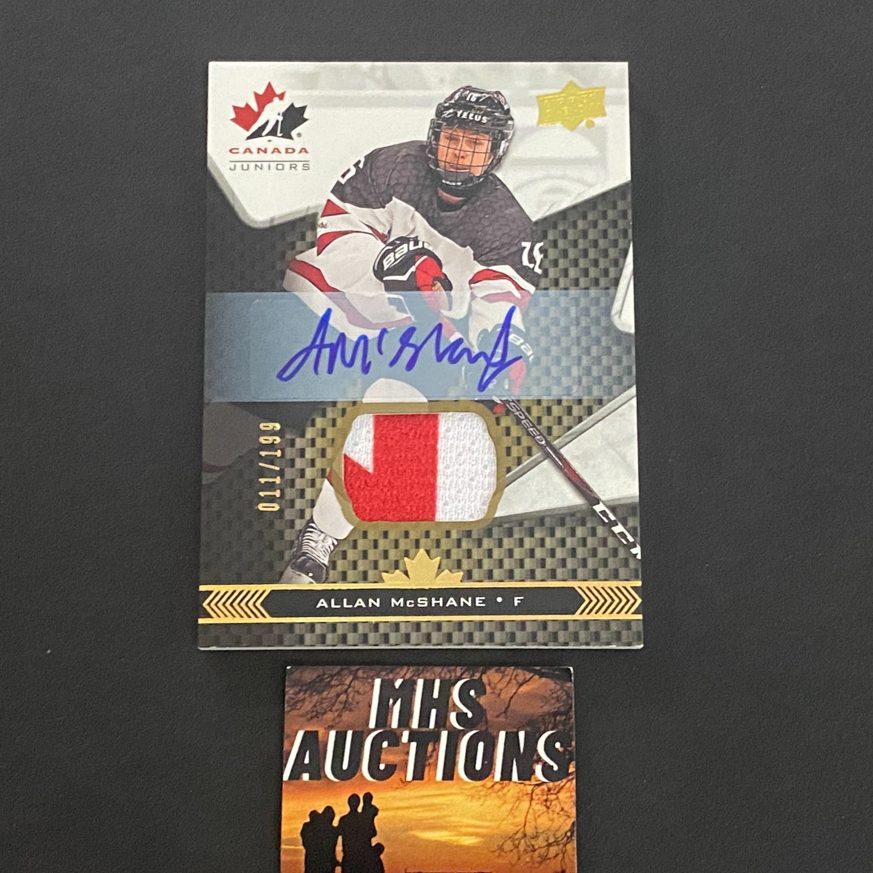 ALLAN McSHANE AUTOGRAPH/JERSEY PATCH CARD EXCELLENT PATCH #D/199