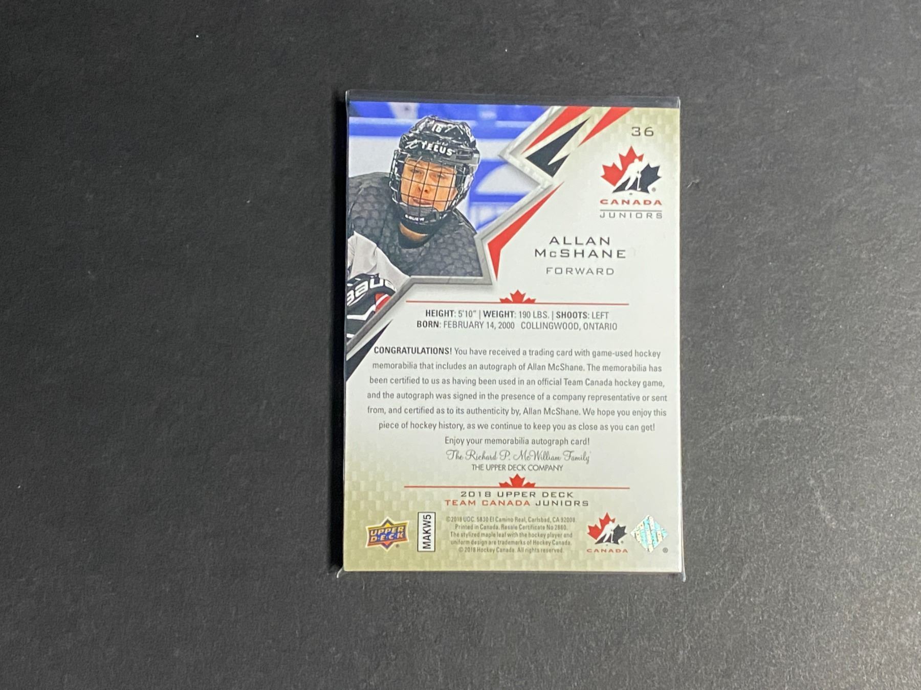 ALLAN McSHANE AUTOGRAPH/JERSEY PATCH CARD EXCELLENT PATCH #D/199