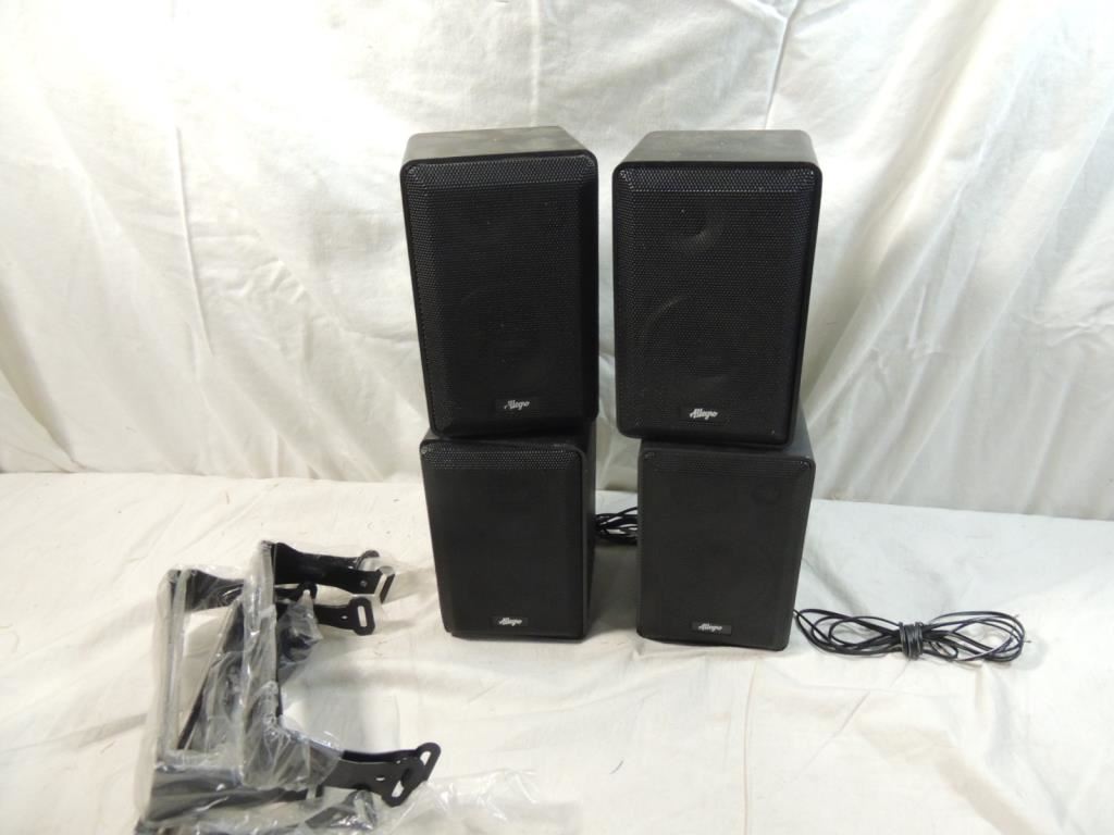 SURROUND SOUND SPEAKERS AND MOUTING HARDWARE, SPEAKERS AUDIO SPEAKERS AS SHOWN SEE PHOTO FORMORE DETAILS.