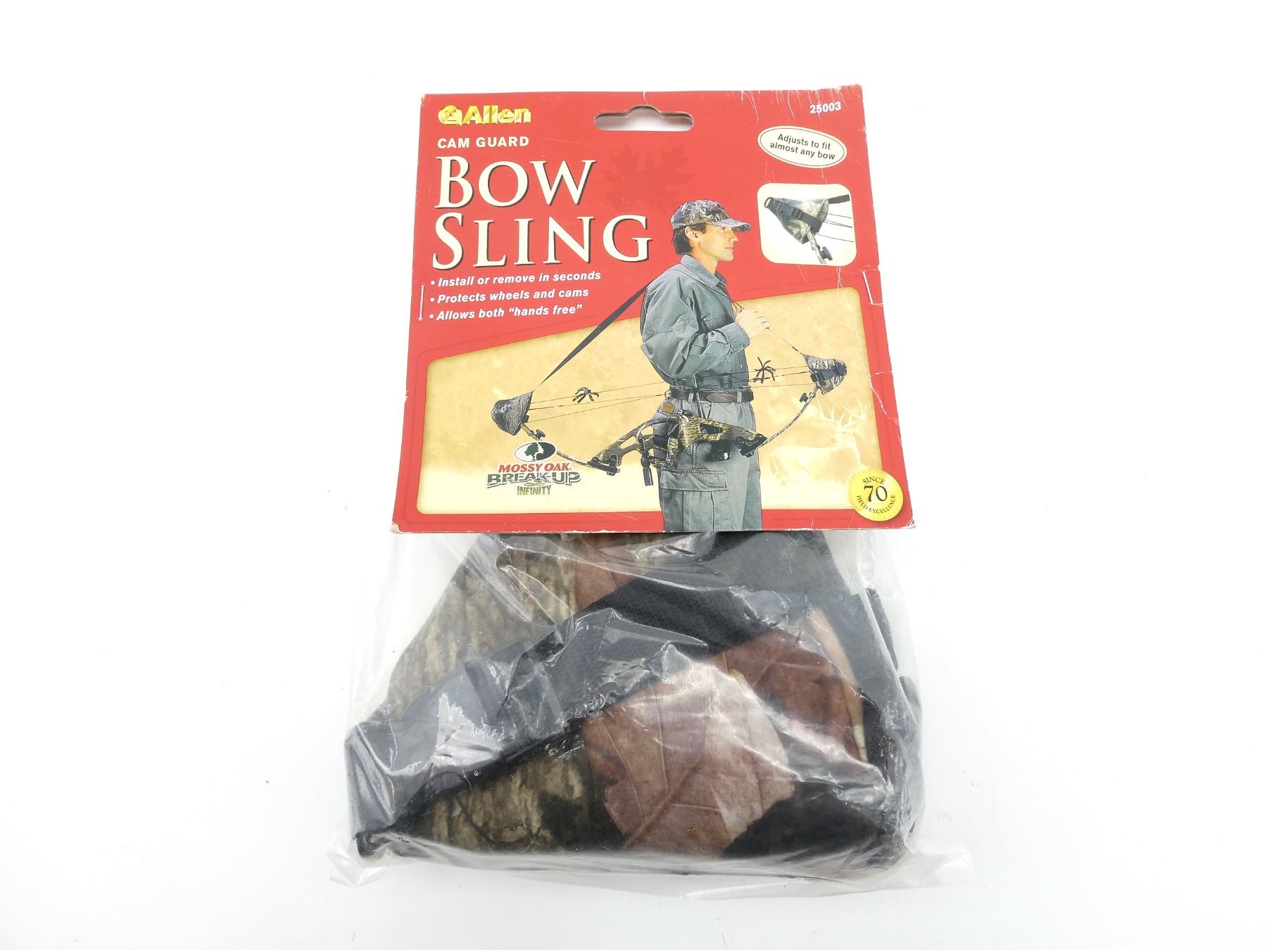 LOT INCLUDES; (1) ALLEN CAM GUARD BOW SLING, ADJUST TO FIT ALMOST ANY BOW, INSTALL OR REMOVE IN SECONDS, PROTECTS WHEELS AND CAMS, NEW OLD STOCK, SEE PHOTOS, UNOPENED.