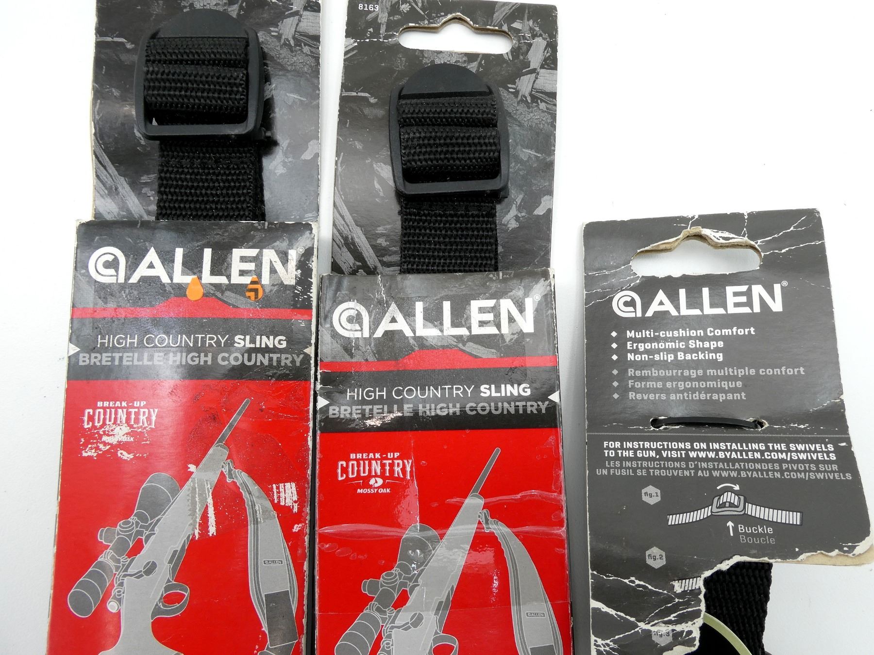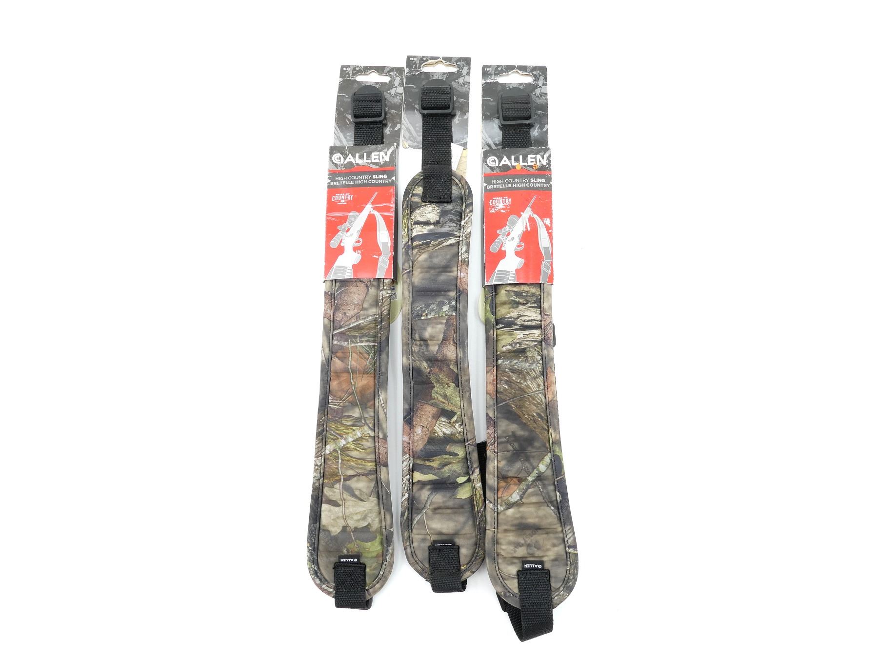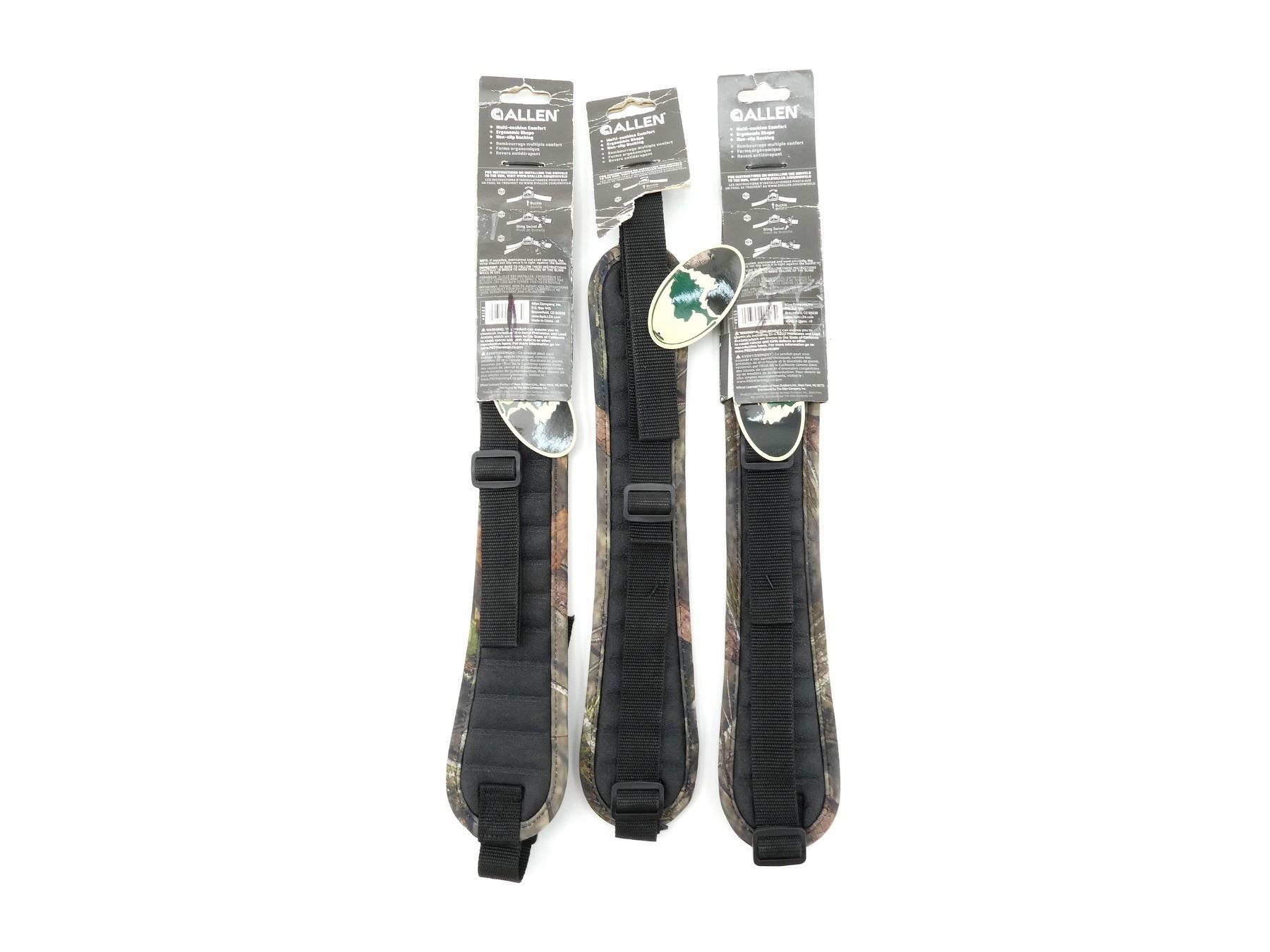 LOT INCLUDES; (3) RIFLE SLINGS, MOSSY OAK CAMOUFLAGE, MULTI-CUSHION / ERGONOMIC / NON-SLIP PAD, APPEARS NEW OLD STOCK. SEE PHOTOS.