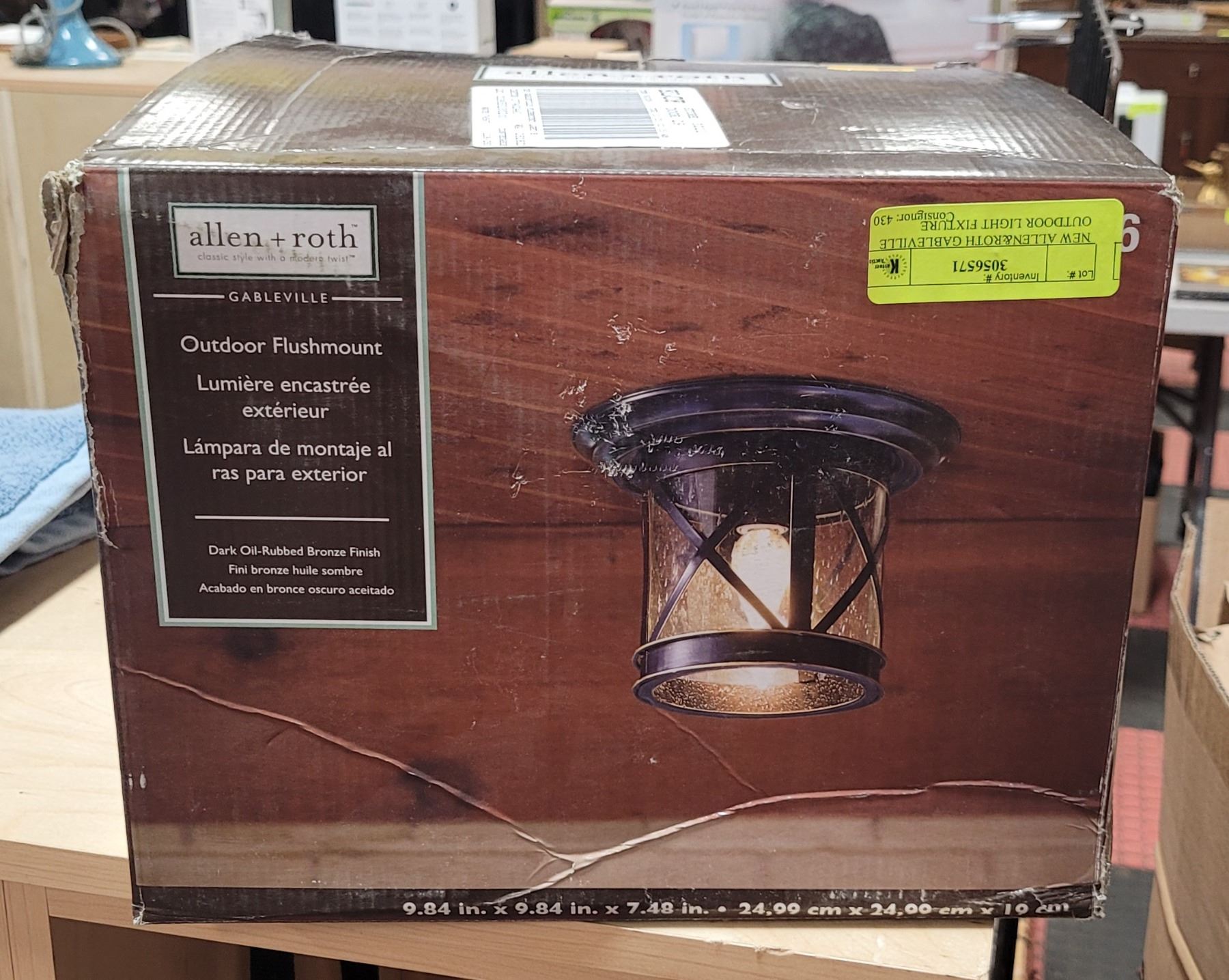 OUTDOOR FLUSH MOUNT LIGHT. DARK OIL-RUBBED BRONZE FINISH. MEASURES 7.5"X10"X10"