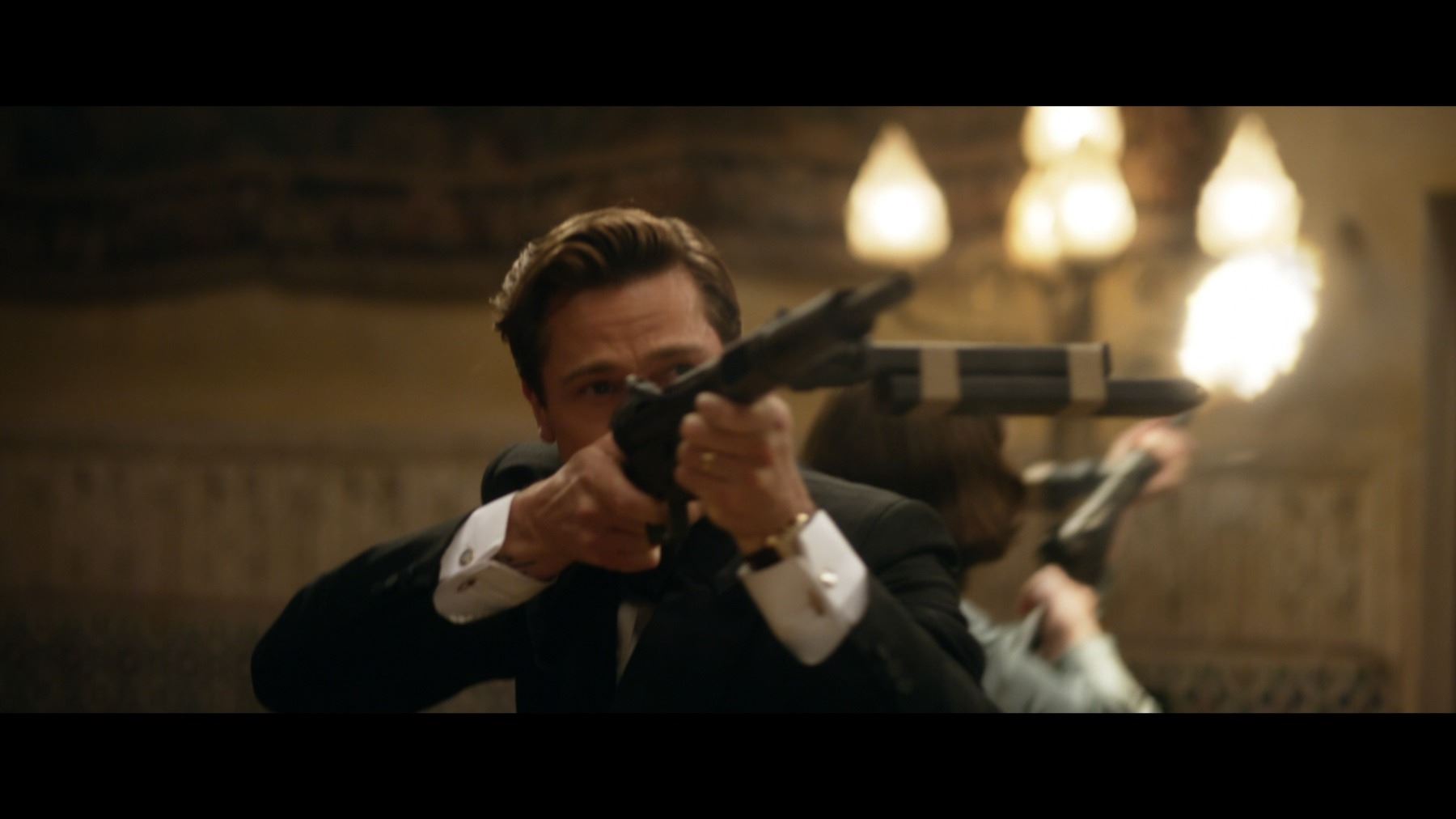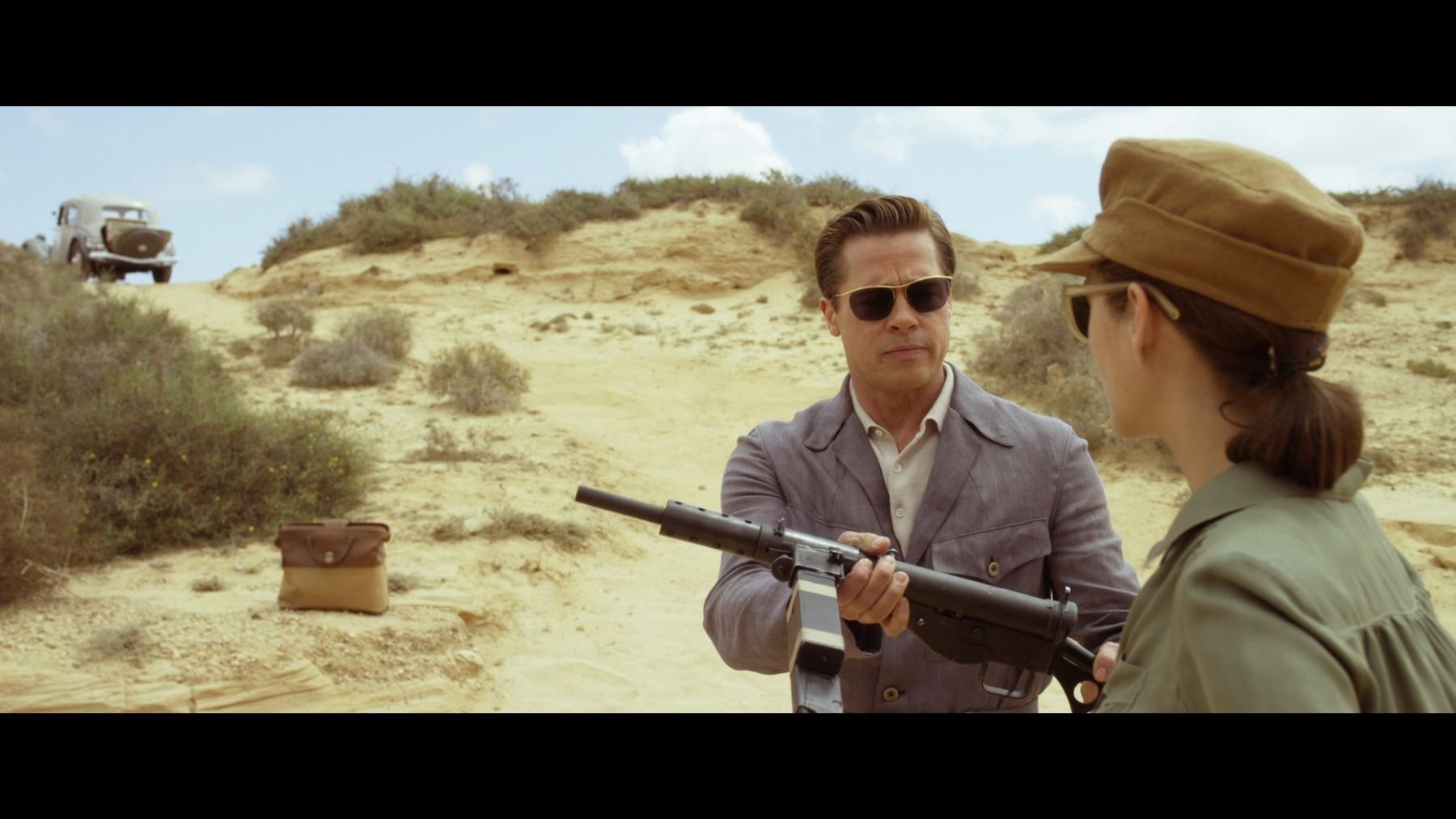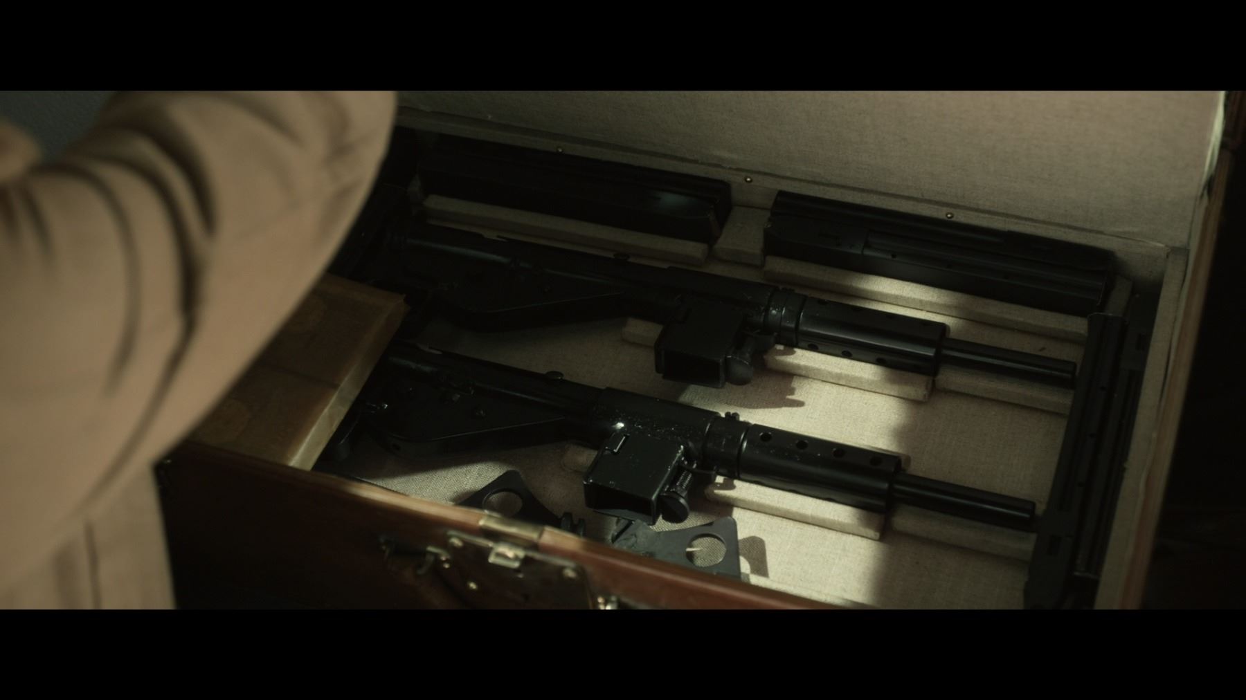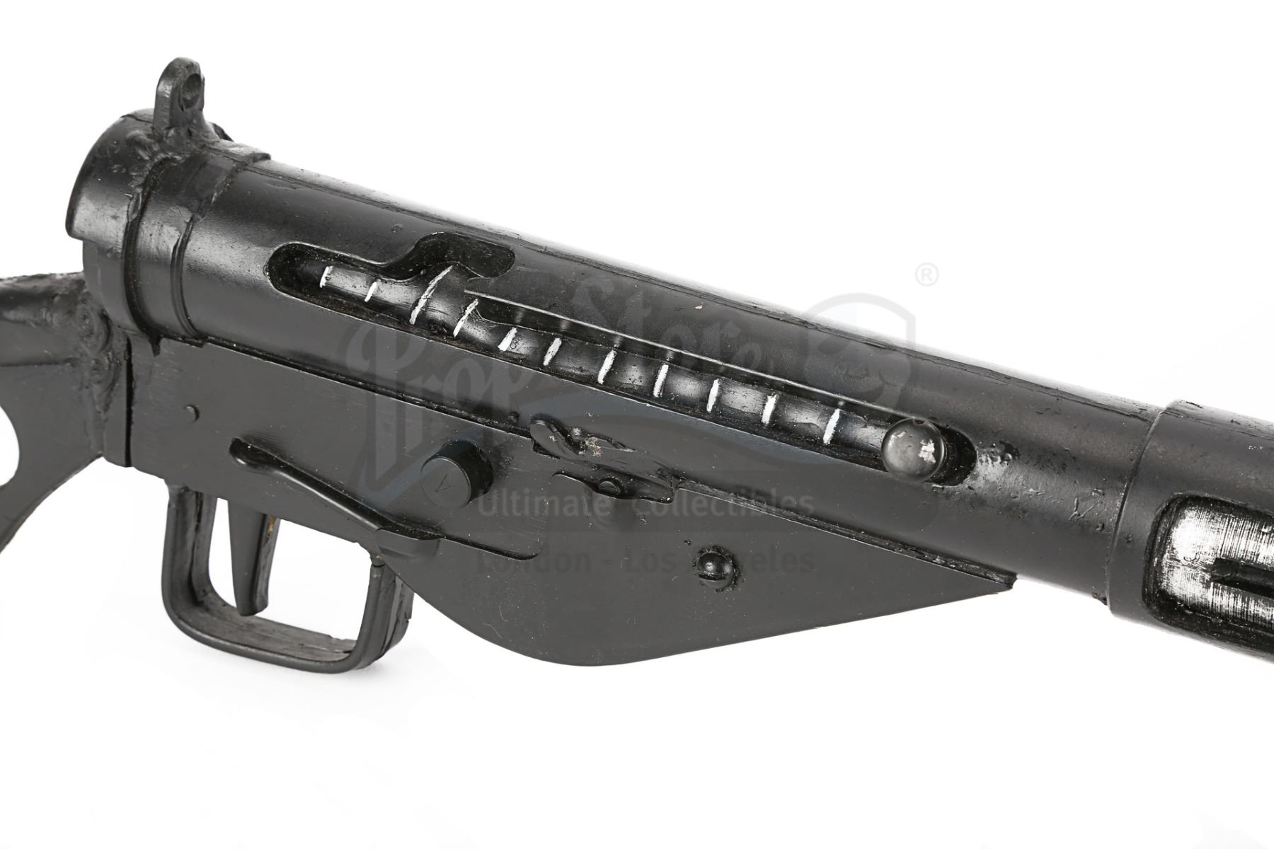 Max's (Brad Pitt) Sten submachine gun from Robert Zemeckis' war thriller Allied. Max used his gun to teach Marianne (Marion Cotillard) how to shoot, and later wielded it during the mission to assassinate the German ambassador (Anton Blake). The gun is a stunt version of a Sten Mk II, made predominantly of rubber, with a metal armature. The weapon has two magazines - one made of metal, one of rubber - strapped together with tape, allowing Max to reload more quickly and easily. The piece has some wear from production use, including scuffing and scratches, and part of the butt of the gun has come away. Dimensions: 79 cm x 35 cm x 20 cm (13" x 3 3/4" x 9")