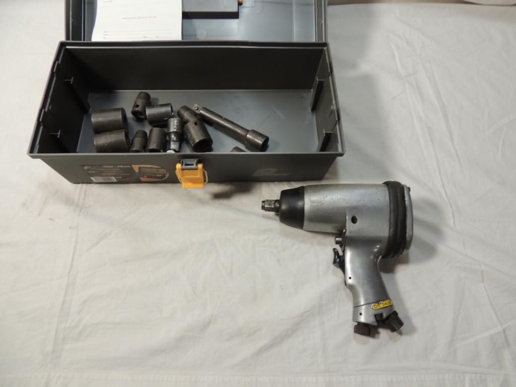 ALLIED PNEUMATIC WRENCH WITH ATTACHEMENTS. AS SHOWN. SEE PHOTO FOR MORE DETAILS.