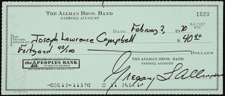 ALLMAN BROTHERS/GREGG ALLMAN SIGNED CHECK, 1970
