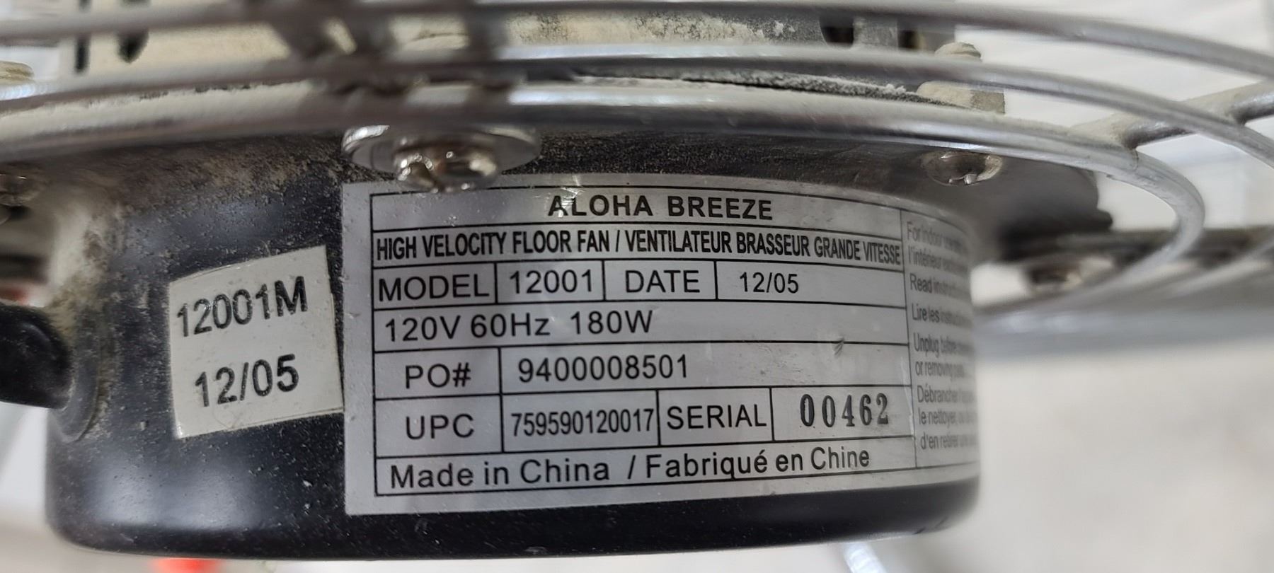 ALOHA BREEZE HIGH VELOCITY FLOOR FAN MODEL 12001 VERY CLEAN