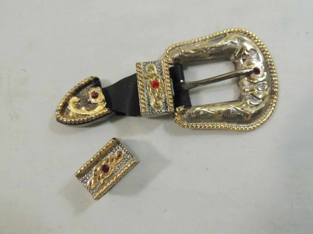 DECORATIVE ALPACA MEXICAN SILVER BELT BUCKLE AND BELT PARTS AS SHOWN SEE PHOTO FOR MORE DETAILS