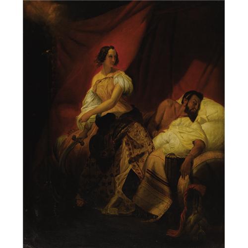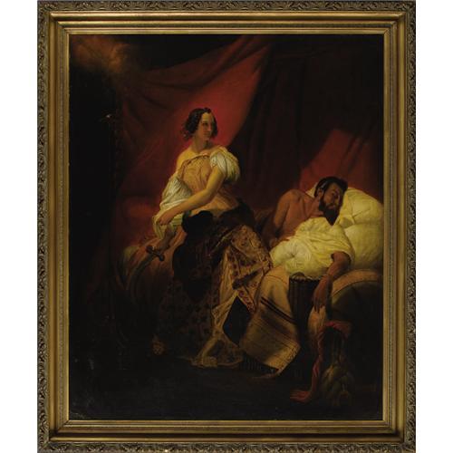 <B>EMILE JEAN HORACE VERNET</B></I> (French 1789-1863)<BR><I>Judith & Holifer</B></I><BR>Oil on canvas<BR>42-1/2 x 35 inches (107.3 x 88.9 cm)<BR><BR><BR><BR><b>Shipping:</b> Requires 3rd Party Shipping (<a target="_blank" href="http://www.heritageauctions.com/common/shipping.php">view shipping information</a>) <BR><BR><B>Important