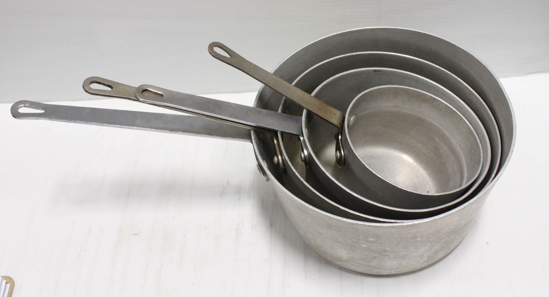 ALUMINIUM POT SET. 11",9",8",6" POTS