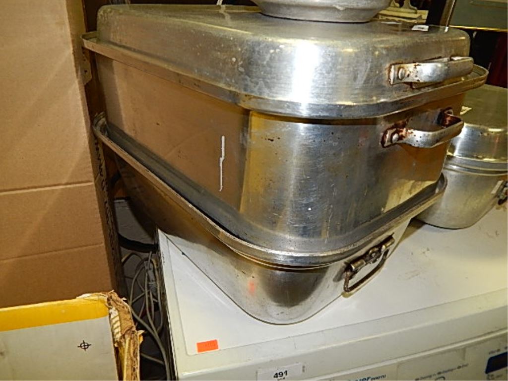ALUMINUM ROASTING PAN WITH LID - AND STEAMER TRAY - VENTS ON SIDE ADJUSTABLE