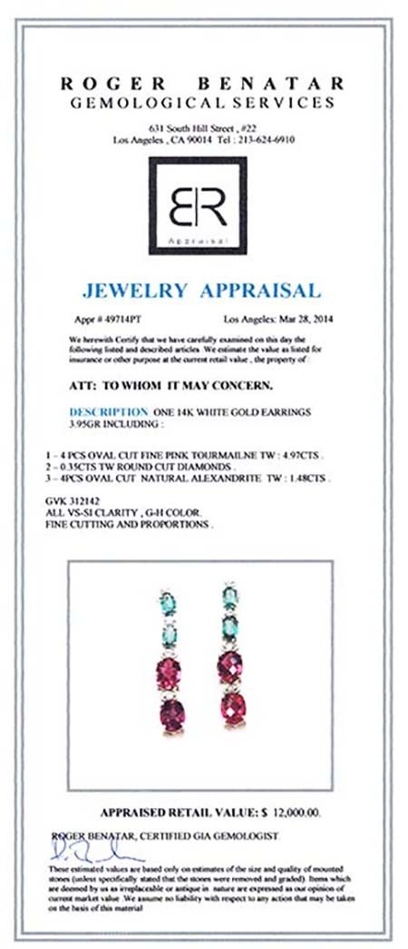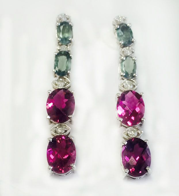 ALX 1.48CT / PINK TOURMALINE 4.97CT, 14K W/G EARRING 3.95GRAM / DIAMOND 0.35CT