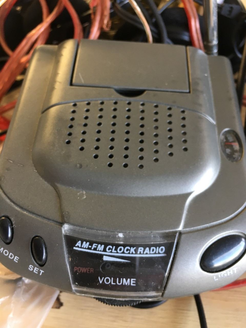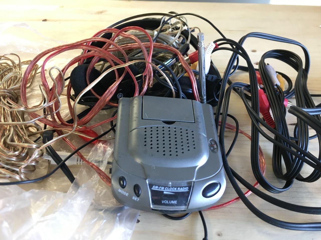 AM/FM Clock Radio + Misc. Speakers Wires + Headphone