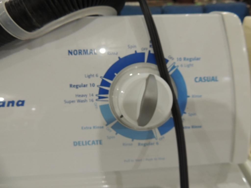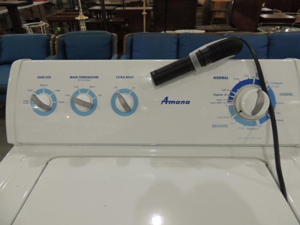 AMANA HEAVY DUTY WASHER DIFFERENT LOAD OPTIONS NEWER WORKS GREAT AS SHOWN SEE PHOTO FOR MORE DETAILS.