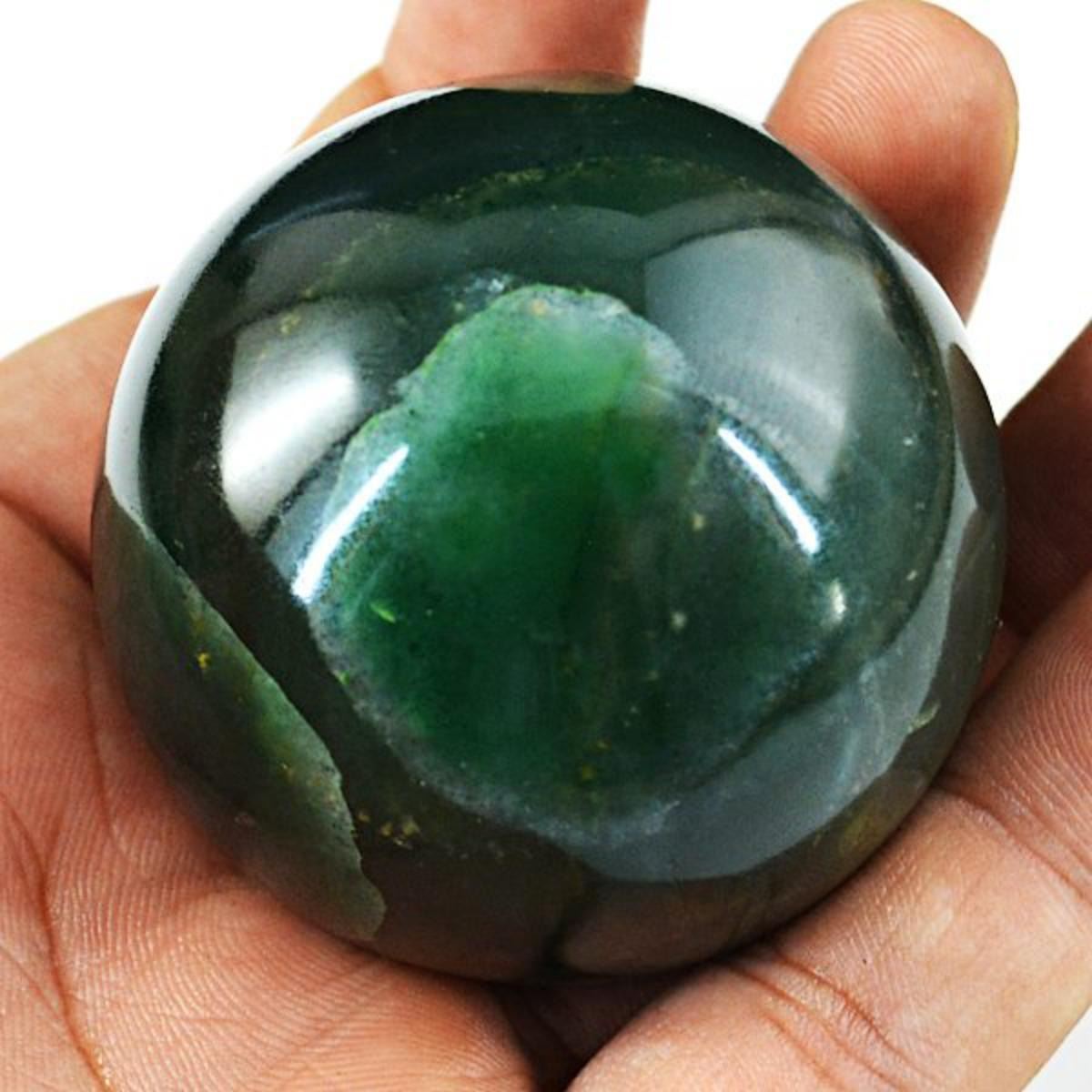 AMAZING 935 CT CERTIFIED JADE HEALIING BALL. Some say. Jade gives you the wisdom to be able to see past self-imposed limitations and helps you shed that outdated can\'t-win-don\'t-try attitude. Incorporate Jade into your daily meditation and have the courage to discover your divine inner truth while discarding any negative patterns holding you back from your full potential. While all crystals promote harmony between the mind, body and spirit, the Jade crystal is a superstar in the world of crystal healing thanks to its powerful connection to the heart chakra and its varying degrees of intense, piercing shades of green. When it comes to bringing prosperity and abundance into your life, the Jade crystal stone is the ultimate good luck charm.