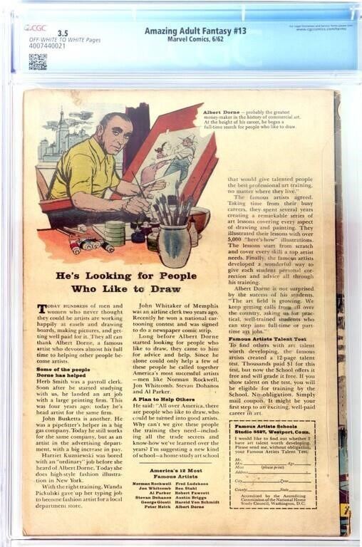 Amazing (adult) Fantasy #13 marvel comic book CGC comic book 3.5. Iconic cover art by Steve Ditko.