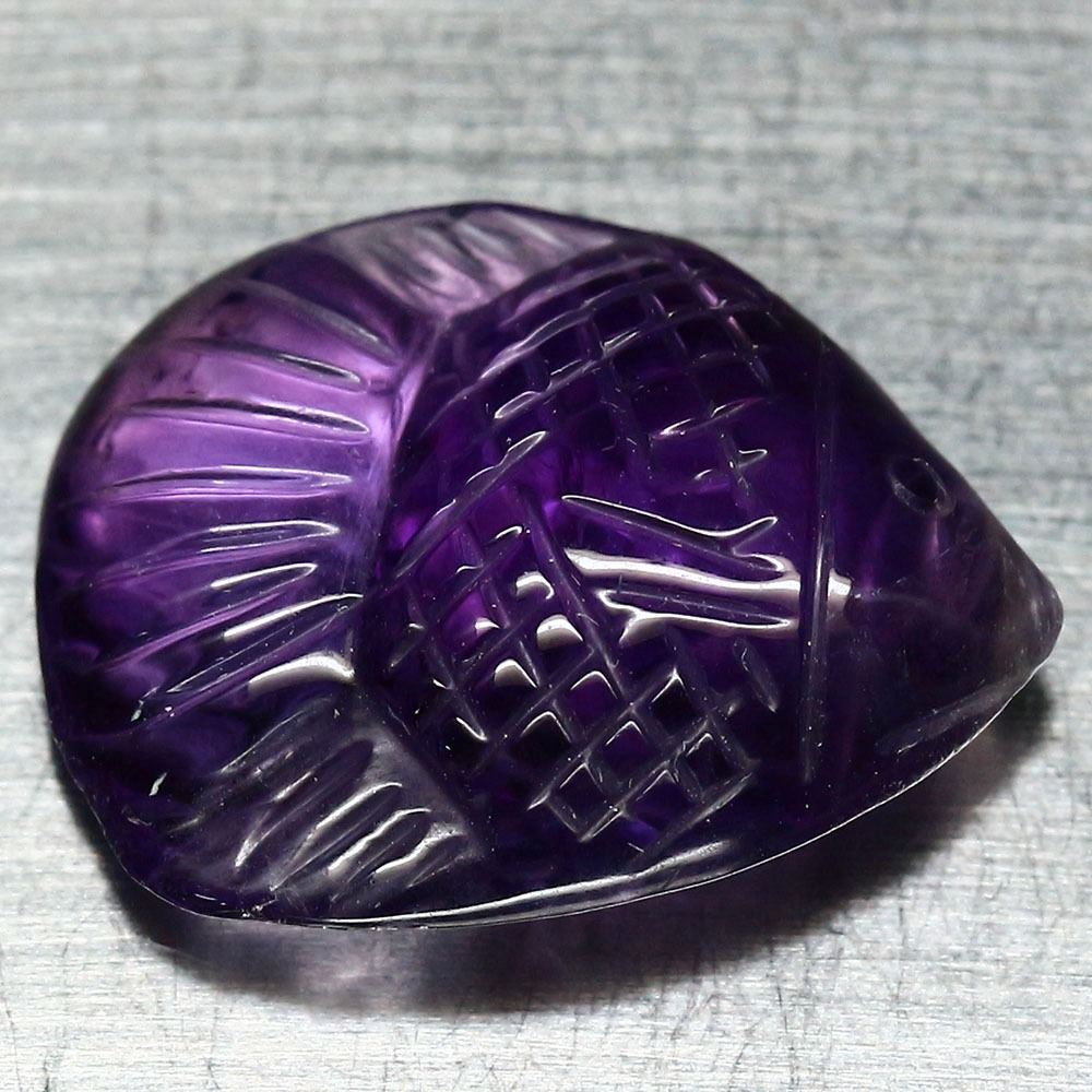 AMAZING NATURAL AMETHYST HAND CARVED FISH. 9.69 CTS AND COMES WITH CERTIFICATION. PLEASE SEE CERTIFICATION FOR FURTHER DETAILS. VERY DETAILED AND UNIQUE !