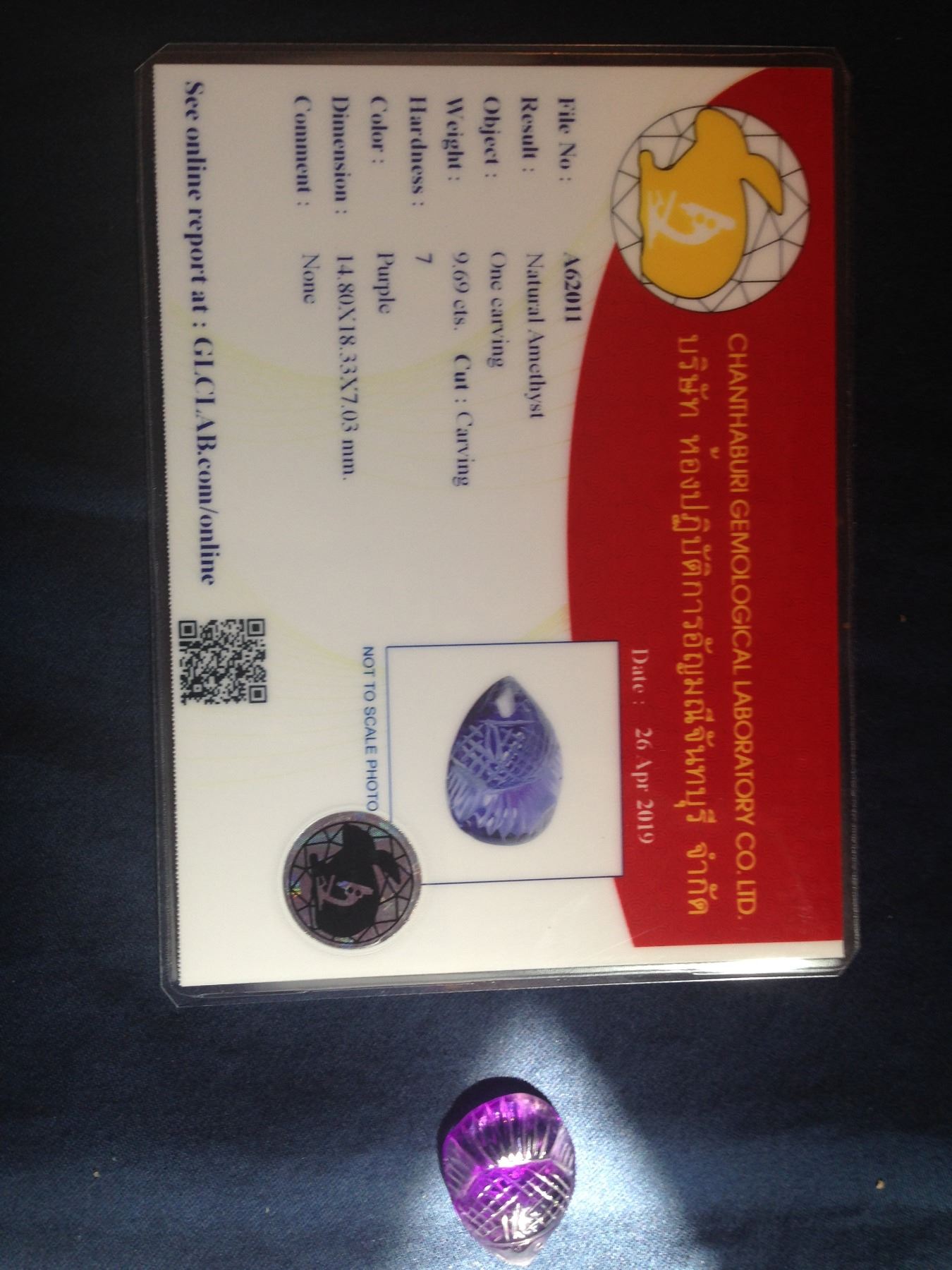 AMAZING NATURAL AMETHYST HAND CARVED FISH. 9.69 CTS AND COMES WITH CERTIFICATION. PLEASE SEE CERTIFICATION FOR FURTHER DETAILS. VERY DETAILED AND UNIQUE !
