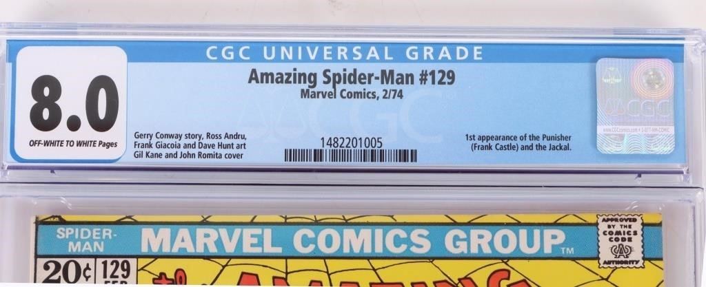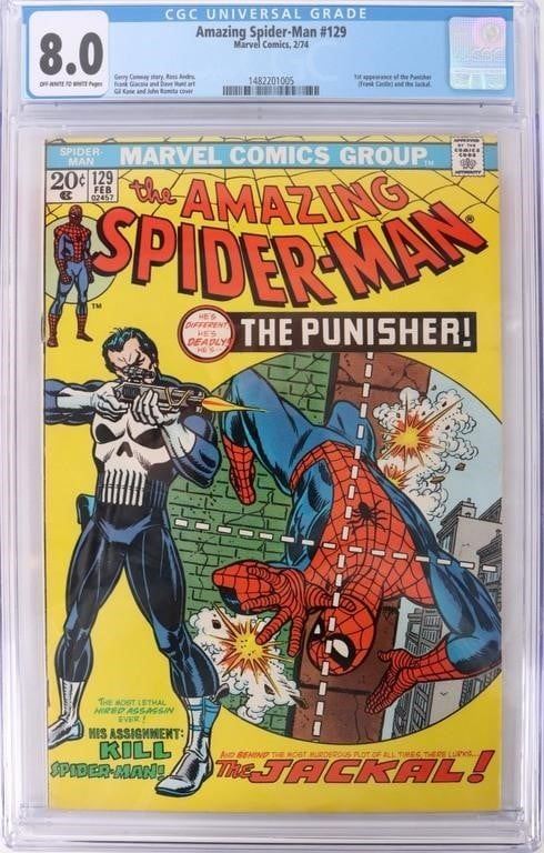 Amazing Spider-Man #129 comic books 1st appearance of the Punisher (Frank Castle) and the Jackal. CGC graded 8.0.