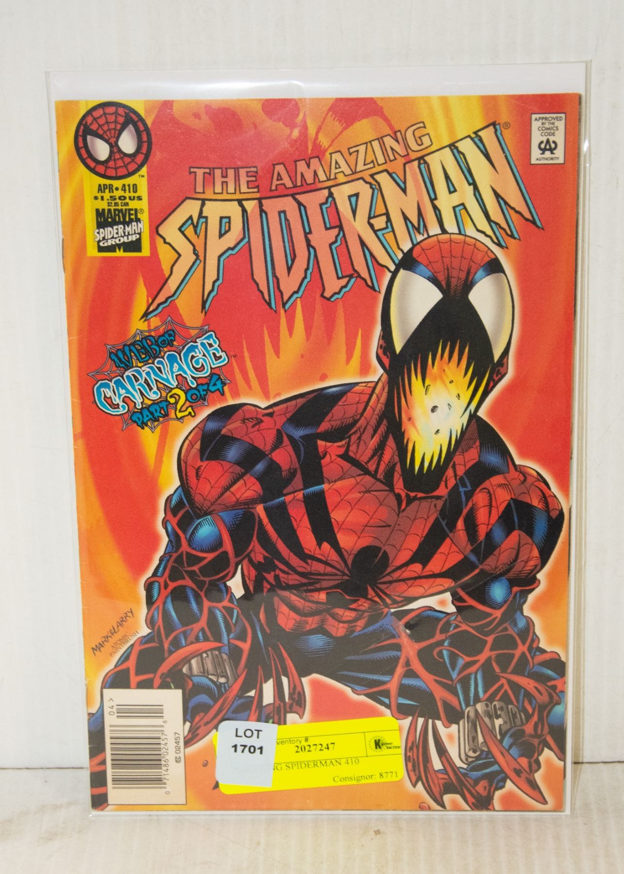 AMAZING SPIDERMAN 410 1ST SPIDER CARNAGE MARVEL COMICS **ALL ITEMS MUST BE REMOVED BY 5PM MONDAY, SEPTEMBER 10, 2022. ALL REMAINING ITEMS WILL BE SUBJECT TO A $6.00 PER DAY STORAGE CHARGE. ANY ITEMS REMAINING AFTER MONDAY, SEPTEMBER 10, 2022 WILL BE CONSIDERED FORFEITED. NO REFUNDS WILL BE ISSUED FOR FORFEITED ITEMS.TO SCHEDULE A PICK UP APPOINTMENT CLICK HERE