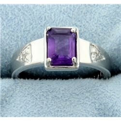 The pendant has a round amethyst gemstone and a bezel set diamond that are in platinum over sterling silver on a 18" sterling silver chain. ...