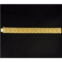 Stamped "14kt Made In Italy Milor". The bracelet is 7 inches long and 6.4mm wide. It has a safety clasp. 13..8g