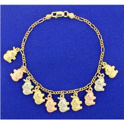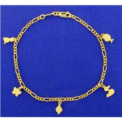 In 10K yellow gold, it contains seventeen .01ct round diamonds. It is 1 inch long with the bale. 3.0g