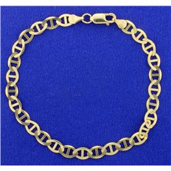 In 14K yellow & white gold, it contains fifty five 1/2pt round diamonds. It is 1 1/8 inch long. 5.8g