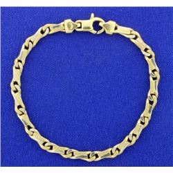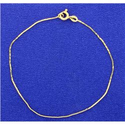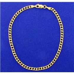 14K yellow gold, it is 1.2mm thick and has a lobster clasp. 3.7g