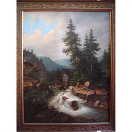 This is a very rare and amazing painting with a quality that you'll never find in any other place but the Bureau Art Gallery. It is from the EUROPEAN SCHOOLl with a sight of a stream and a waterfall with a wood house at the margin, that is indeed a really beautifull painting with a very interesting environment . The Bureau Art Gallery (20 years in business) and our experts can assure you the quality of the painting!