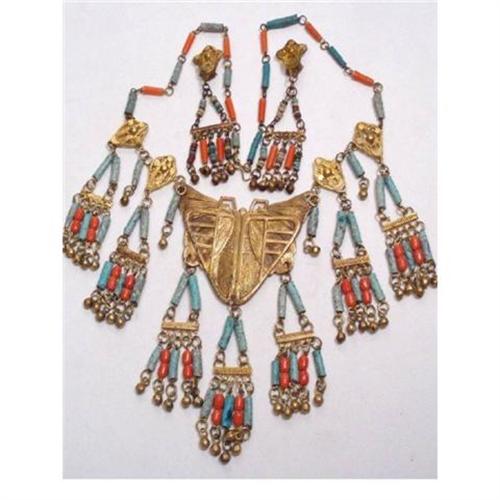 <tr><td>Title:AMAZING old EGYPTIAN MOTH tassel parure</td></tr>
