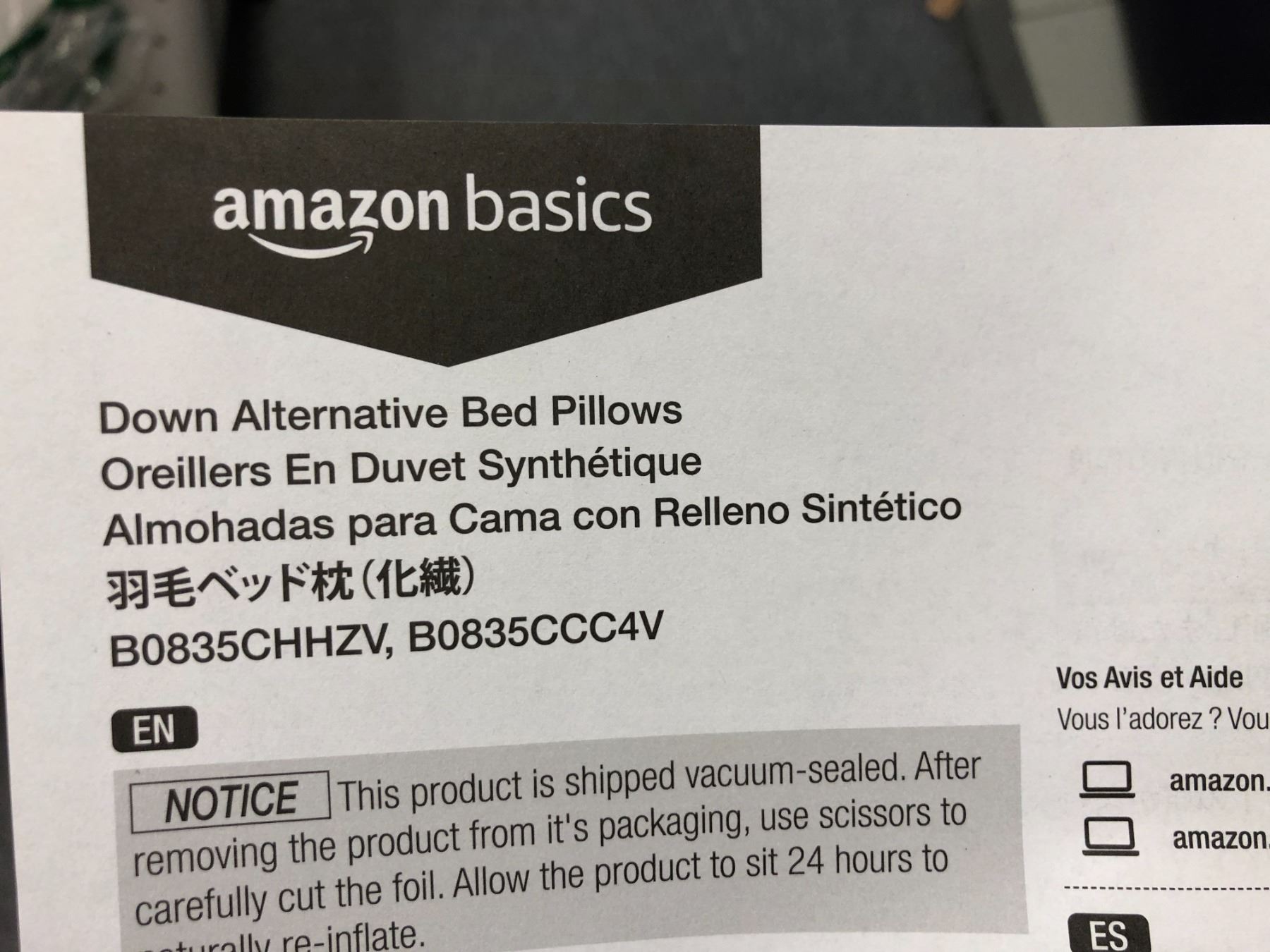 AMAZON BASICS - Down Alternative Bed Pillows - 2 pack