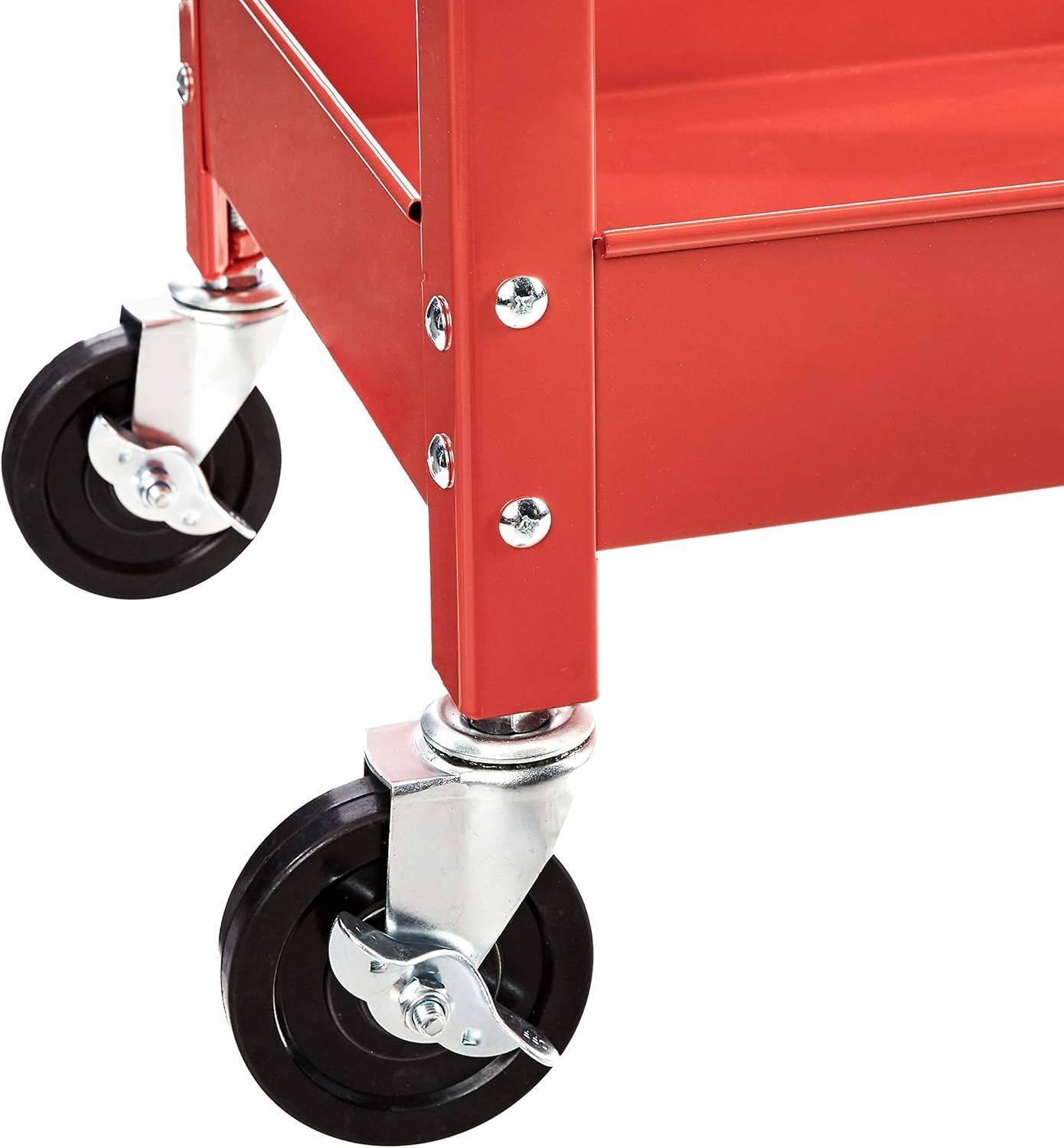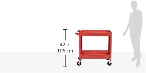 AMAZON BASICS STEEL 2-SHELF MULTIPURPOSE TUB UTILITY/SUPPLY CART WITH 181 KILOGRAMS CAPACITY - RED