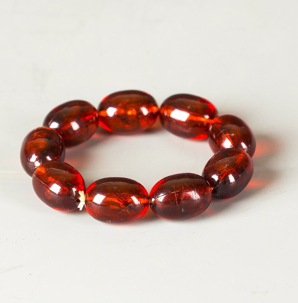 Amber Bracelet, rust red coloe, consist of 9 beads. Length 7"