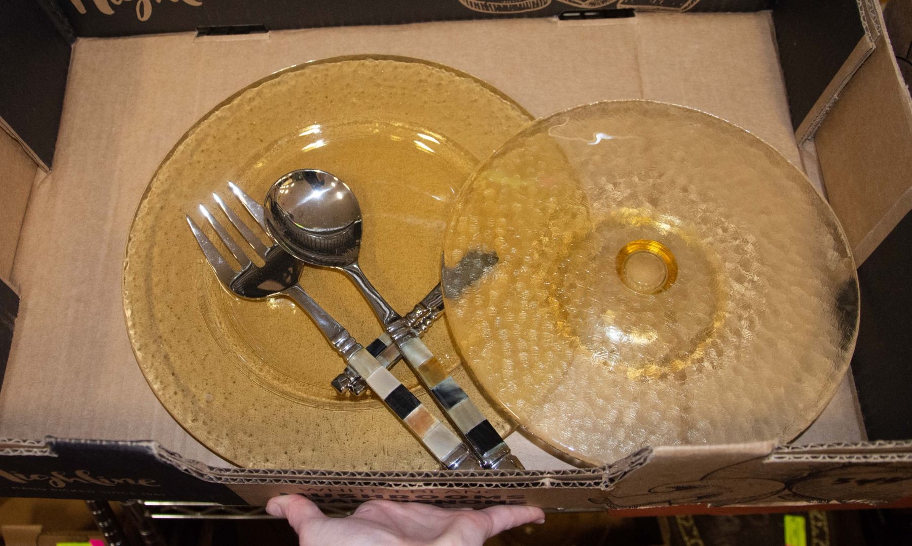 GLASSES COOLER PLATTERS JULIA KNIGHT SERVE UTENSILS. 42 PIECES **ALL ITEMS MUST BE REMOVED BY 5PM SATURDAY, FEBRUARY 15TH 2025. ALL REMAINING ITEMS WILL BE SUBJECT TO A $6.00 PER DAY STORAGE CHARGE. ANY ITEMS REMAINING AFTER MONDAY, MARCH 10TH 2025 WILL BE CONSIDERED FORFEITED. NO REFUNDS WILL BE ISSUED FOR FORFEITED ITEMS. TO SCHEDULE A PICK UP APPOINTMENT CLICK HERE