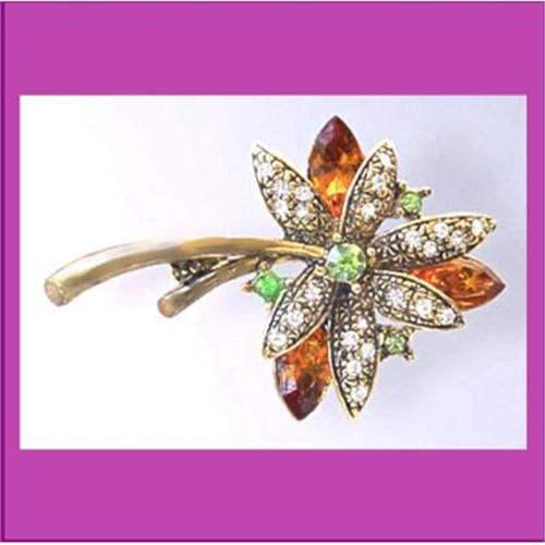 MARIGOLD PIN BROOCH SWAROVSKI CRYSTALS & 24K GOLD