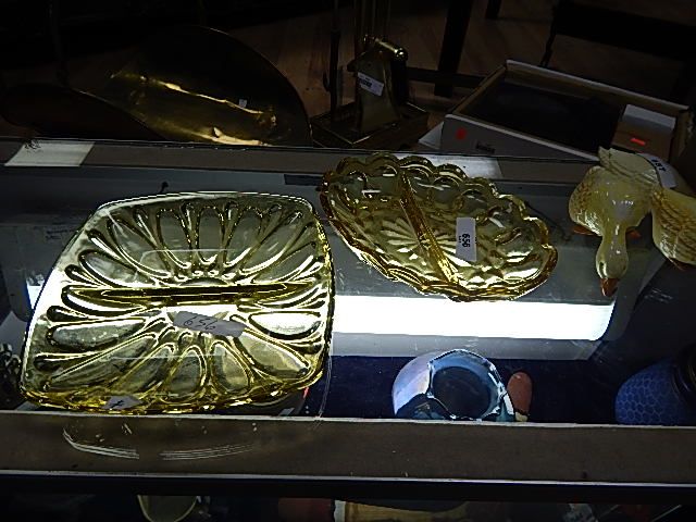 AMBER GLASS DIVIDED SERVING DISHES - 2 TOTAL